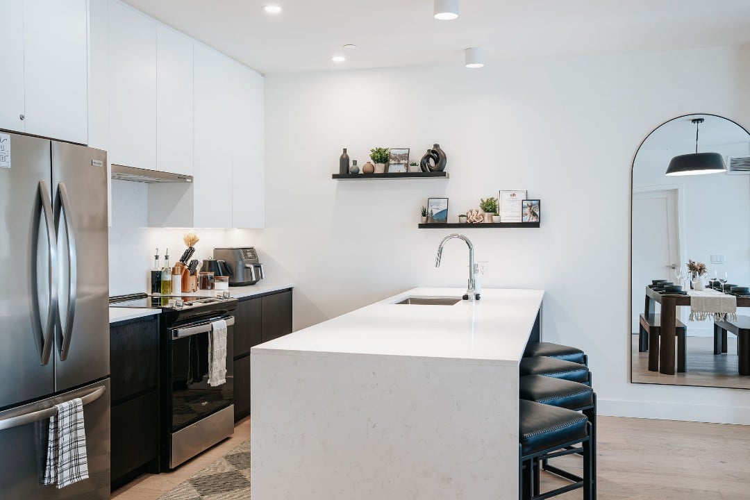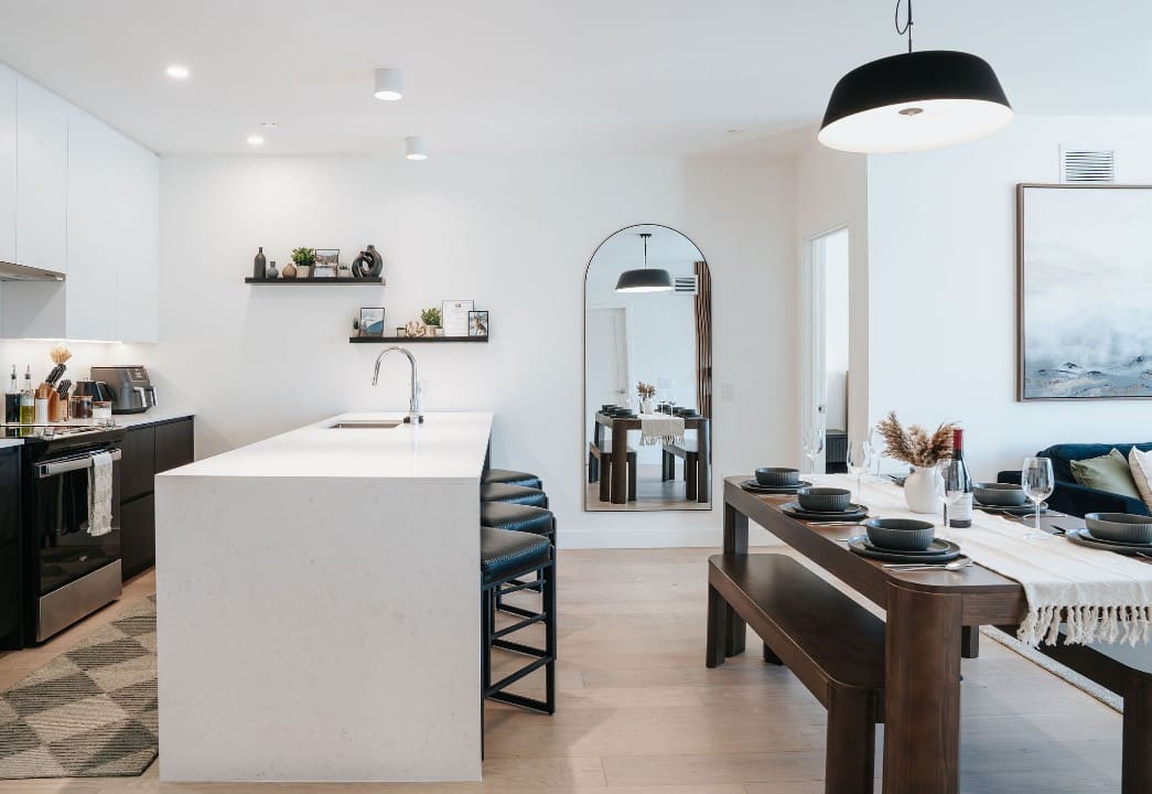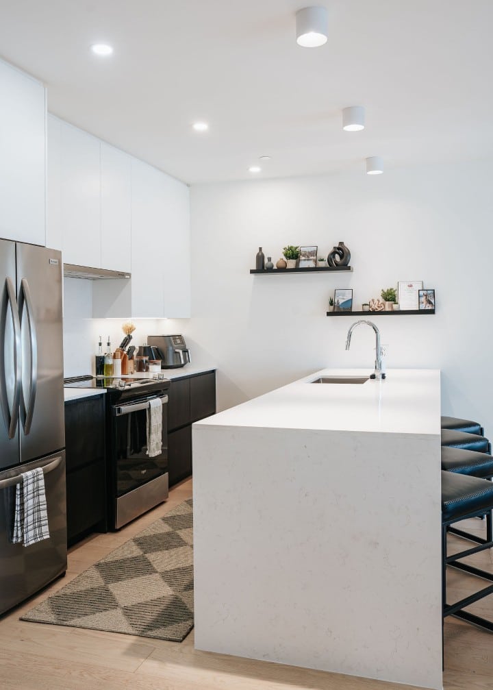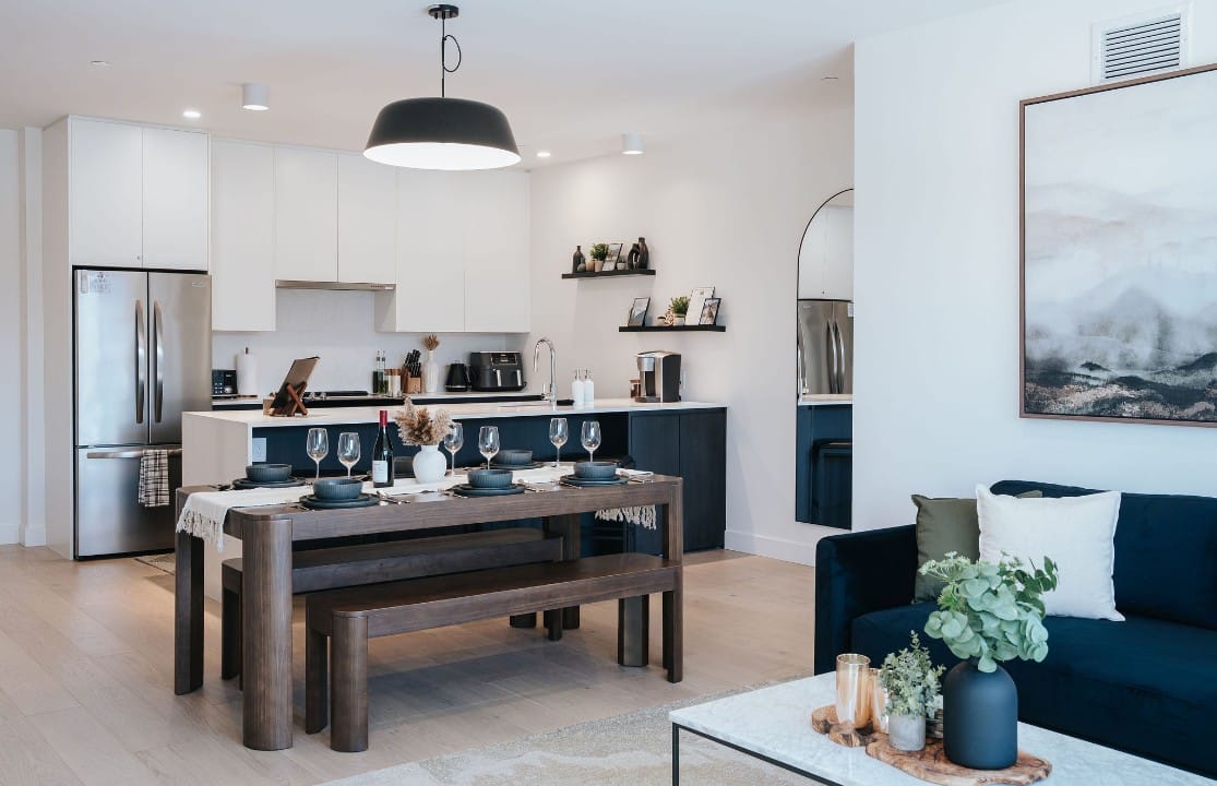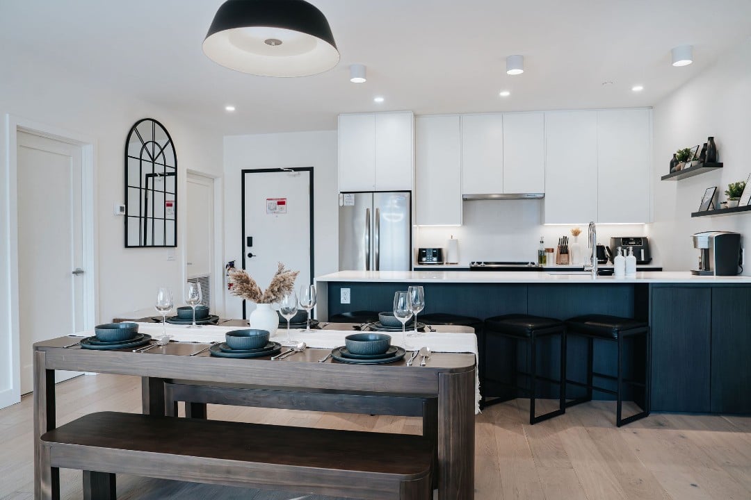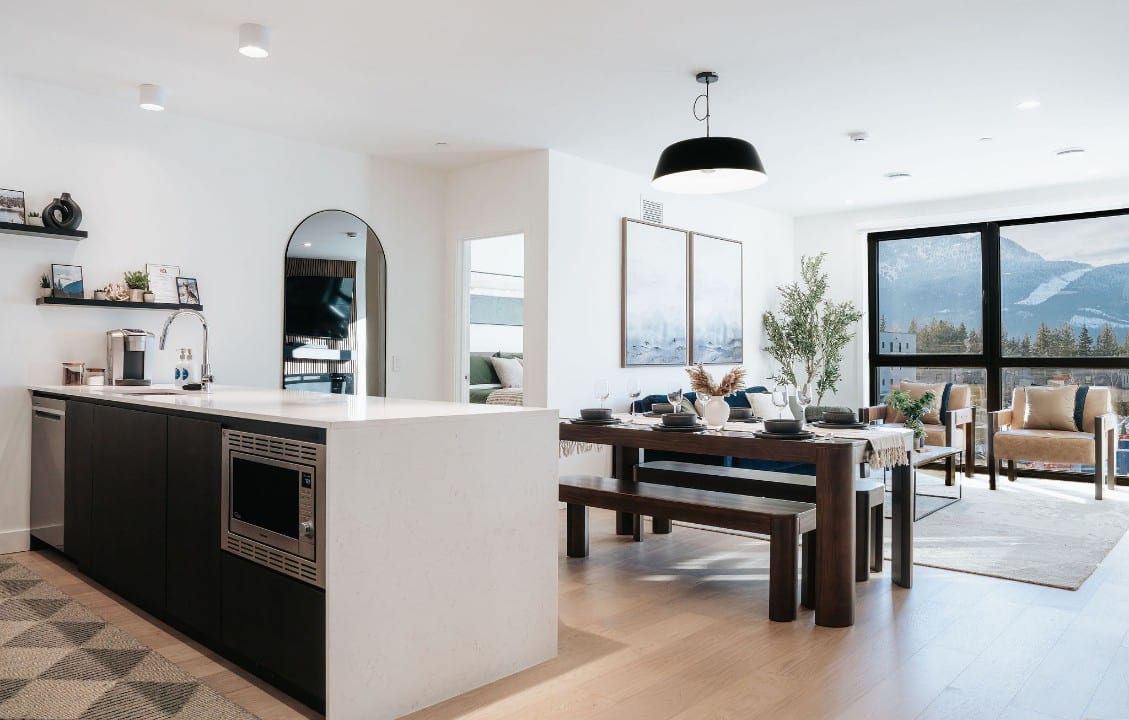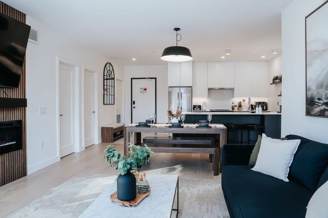 Powder Point Suite, a 2-bed, 2-bath condo at Mackenzie Village offers modern comforts, a fully equipped kitchen, and a cozy living space, making it ideal for both short stays and longer trips. Relax on the rooftop with communal hot tubs, or enjoy a barbecue with friends and family. Conveniently located near local shops, restaurants, and outdoor activities, this suite gives you access to the best of Revelstoke.